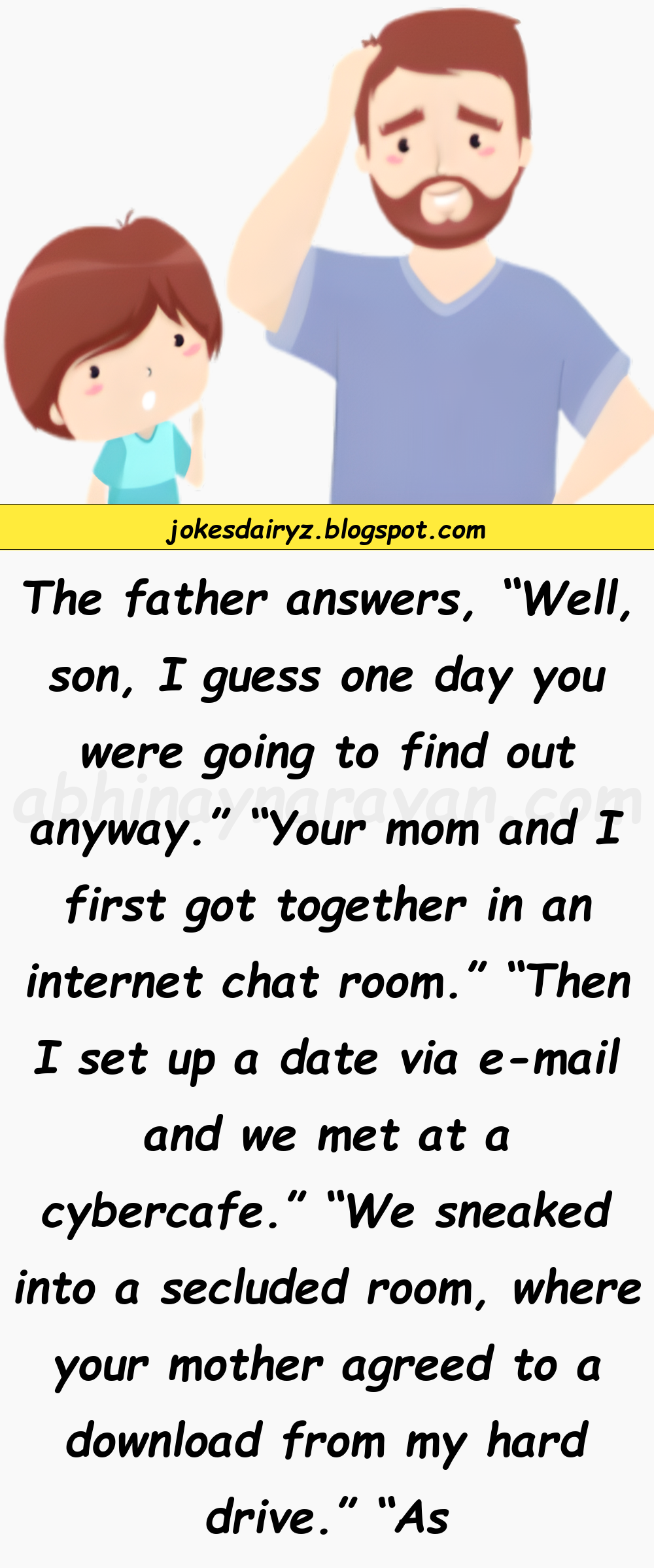 “Your mom and I first got together in an internet chat room.”
