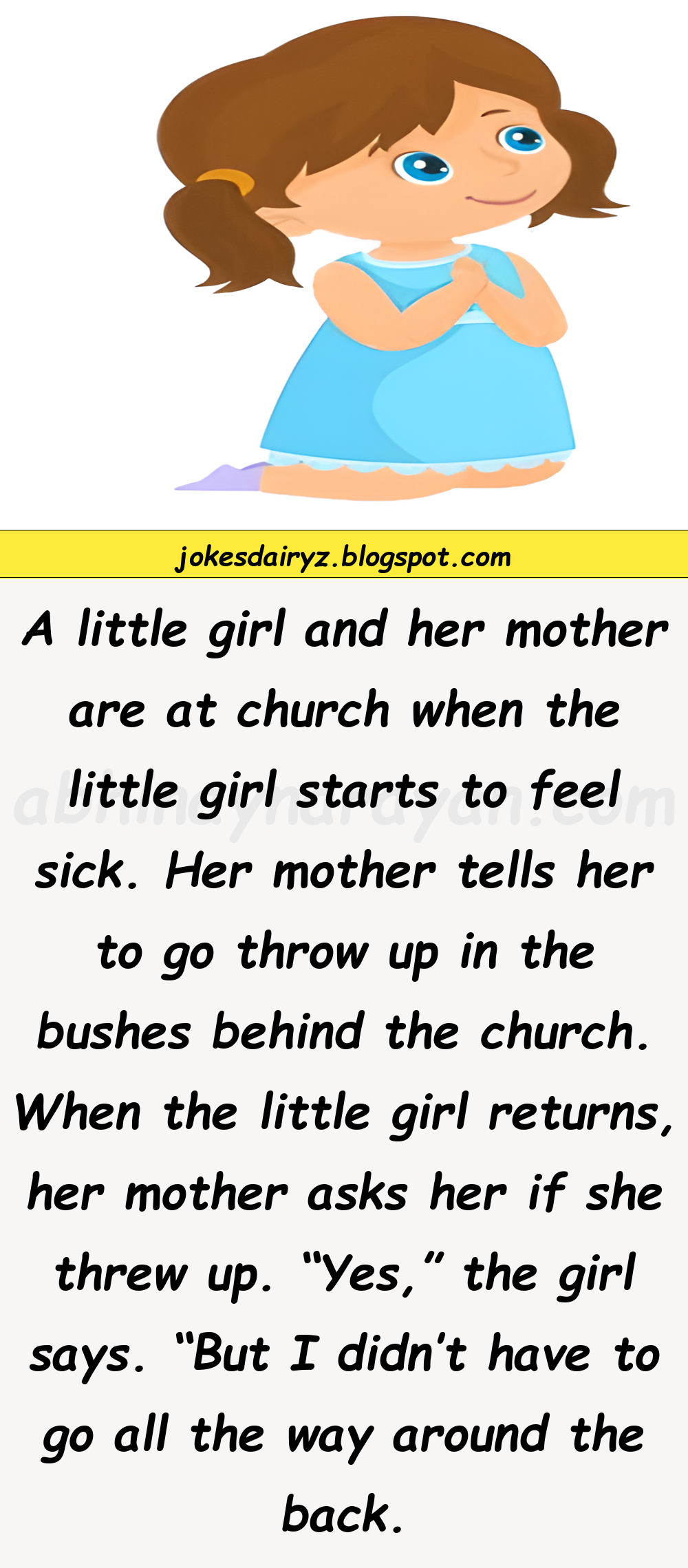 Her mother tells her to go throw up in the bushes behind the church.