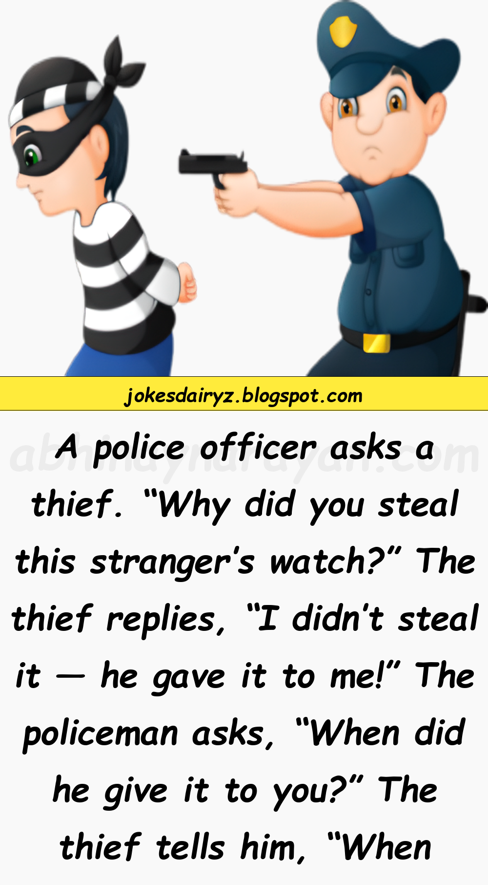 The thief replies, “I didn’t steal it — he gave it to me!”