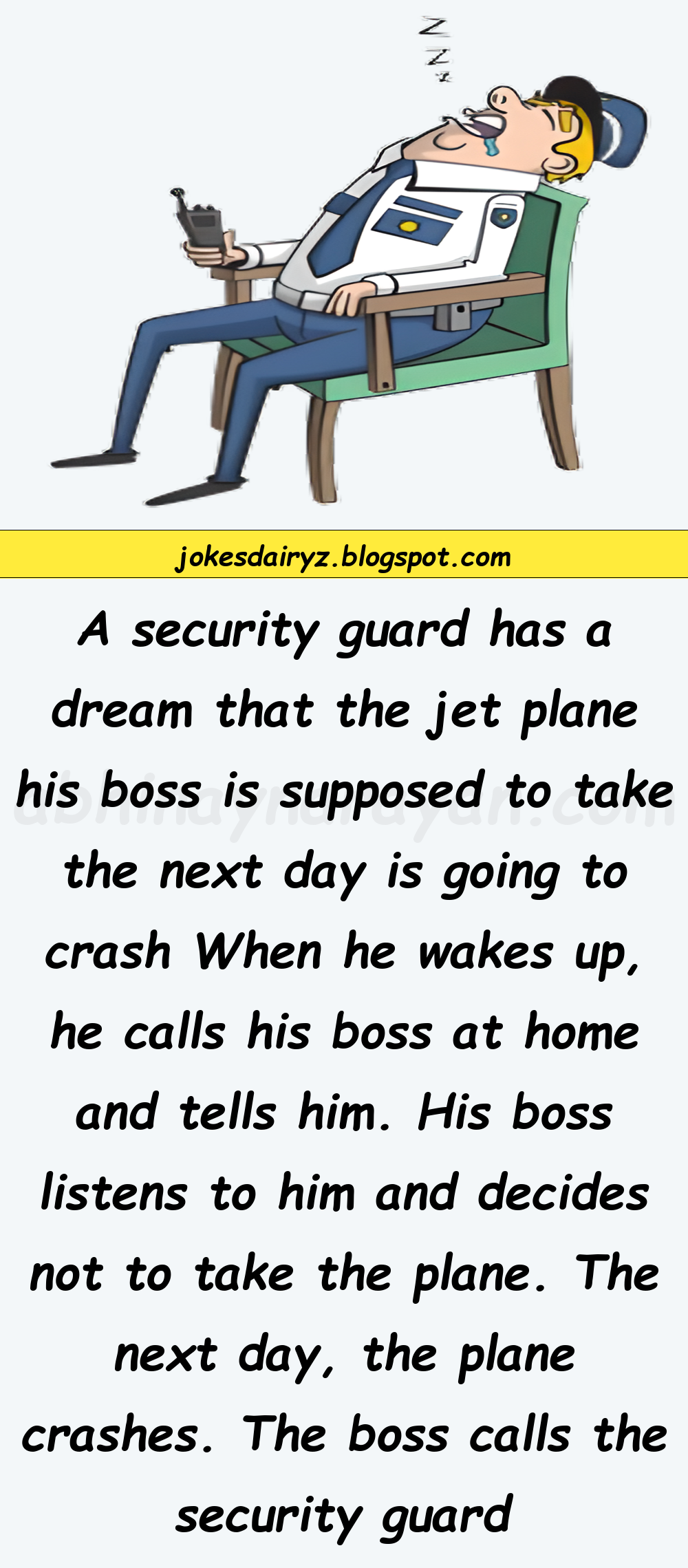A security guard has a dream that the jet plane his boss is supposed to take the next day is going to crash