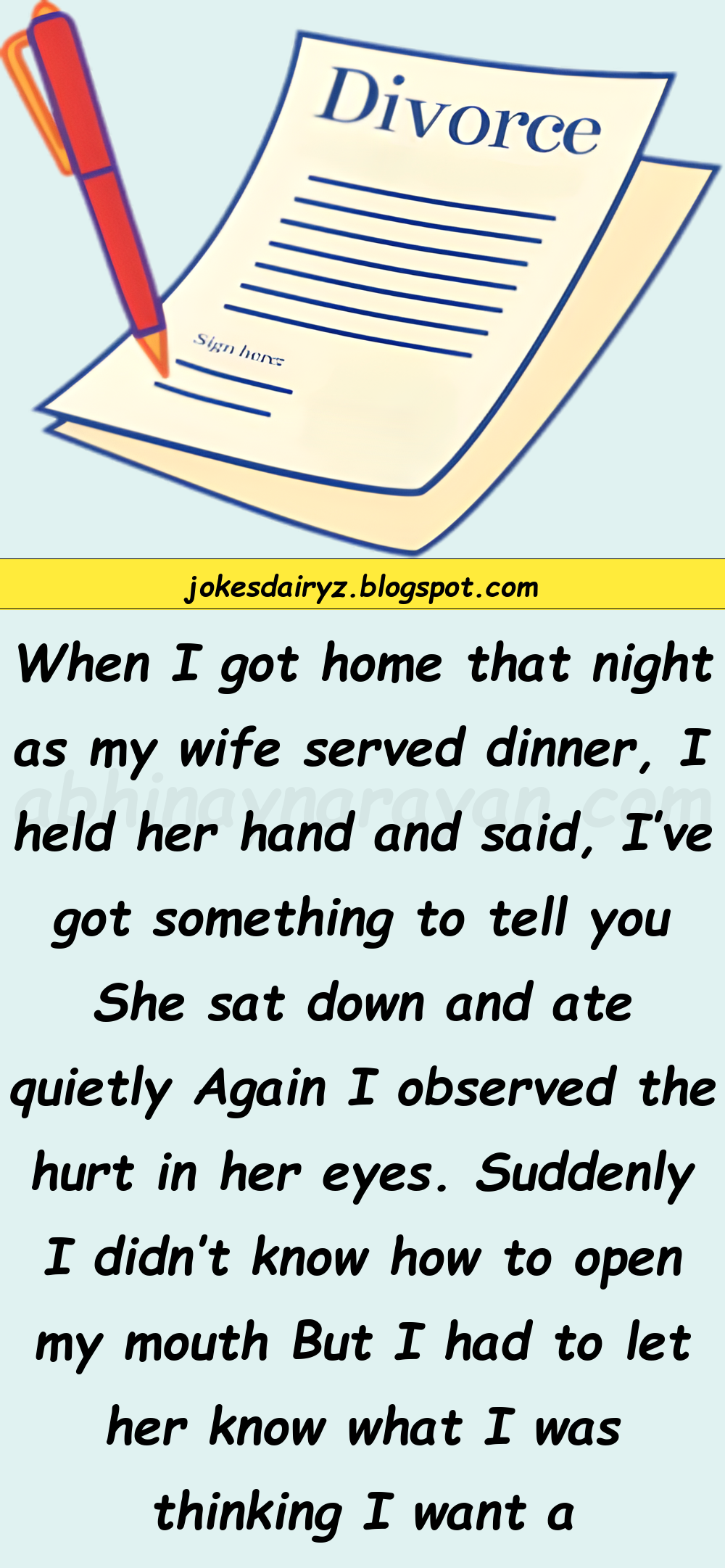 When I got home that night as my wife served dinner, I held her hand and said, I’ve got something to tell you She sat down and ate quietly Again I observed the hurt in her eyes.