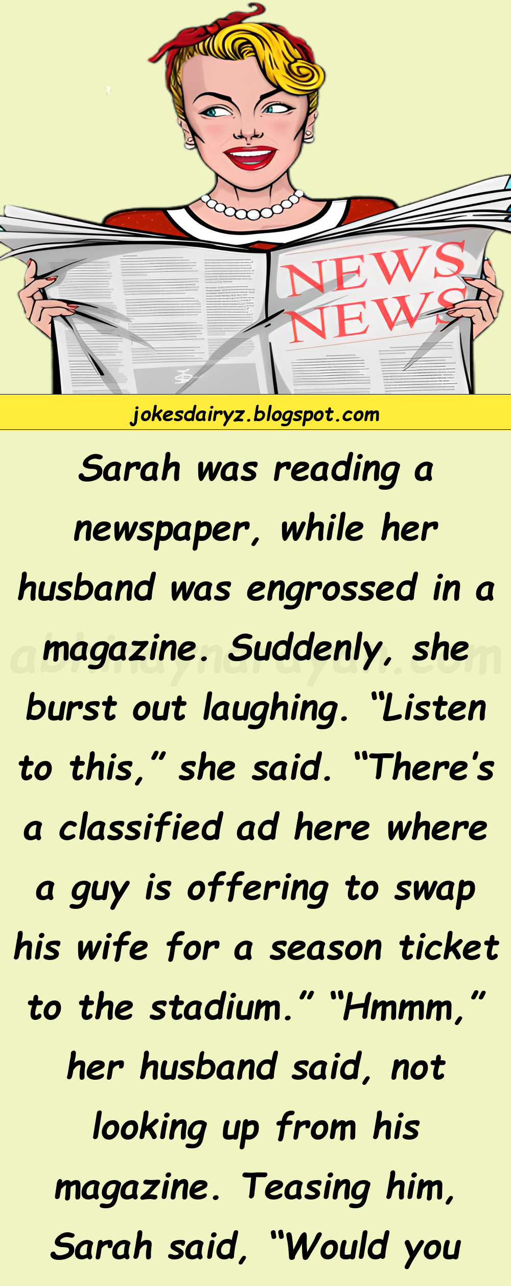 “There’s a classified ad here where a guy is offering to swap his wife for a season ticket to the stadium.”