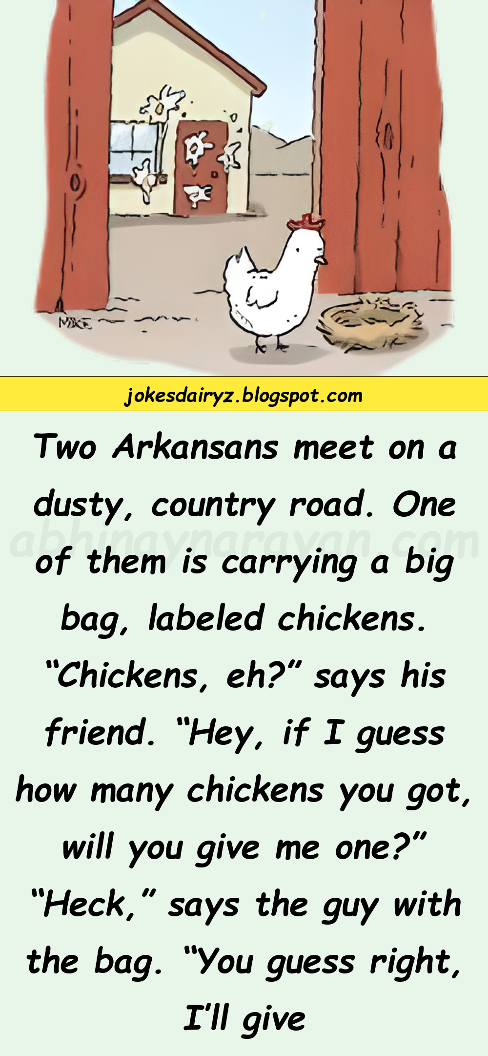 “Hey, if I guess how many chickens you got, will you give me one?”