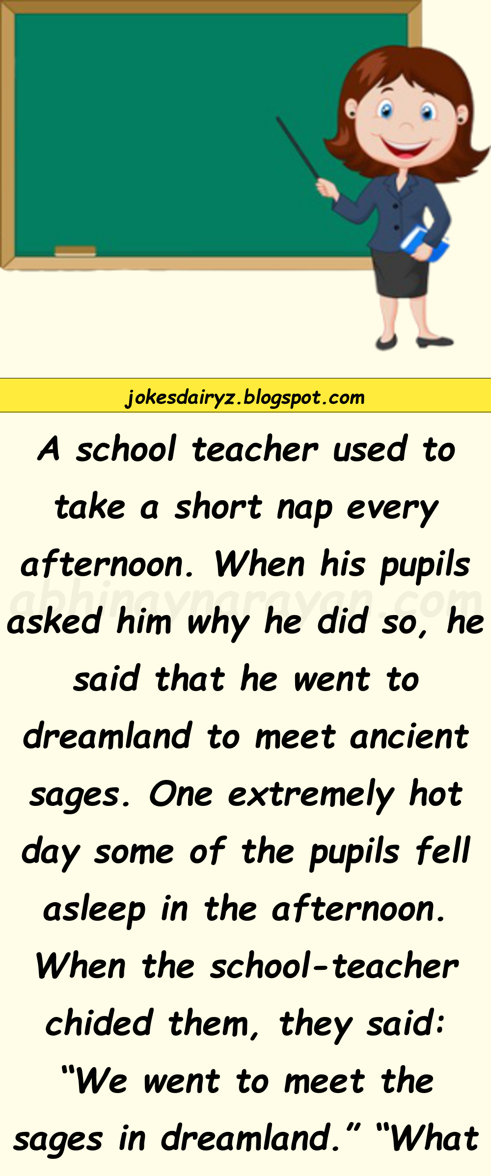 A school teacher used to take a short nap every afternoon.