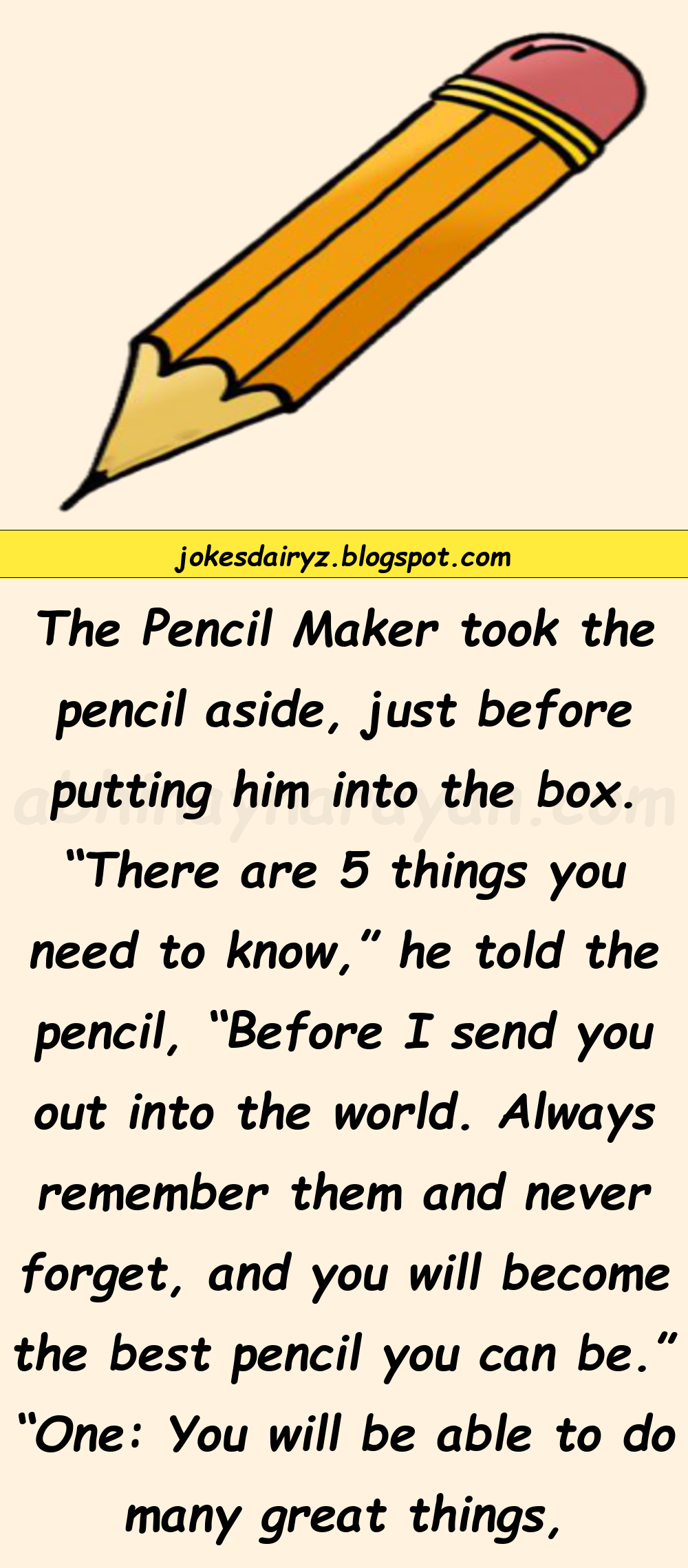 “There are 5 things you need to know,” he told the pencil, “Before I send you out into the world.