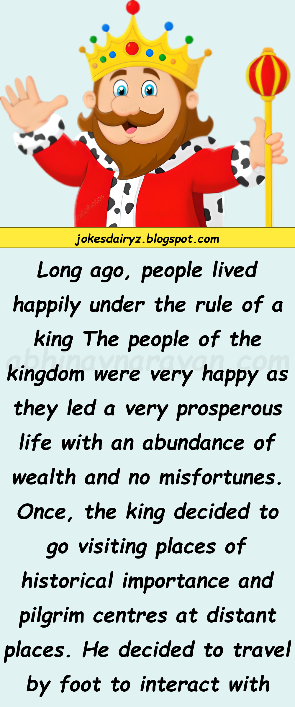 Once, the king decided to go visiting places of historical importance and pilgrim centres at distant places.