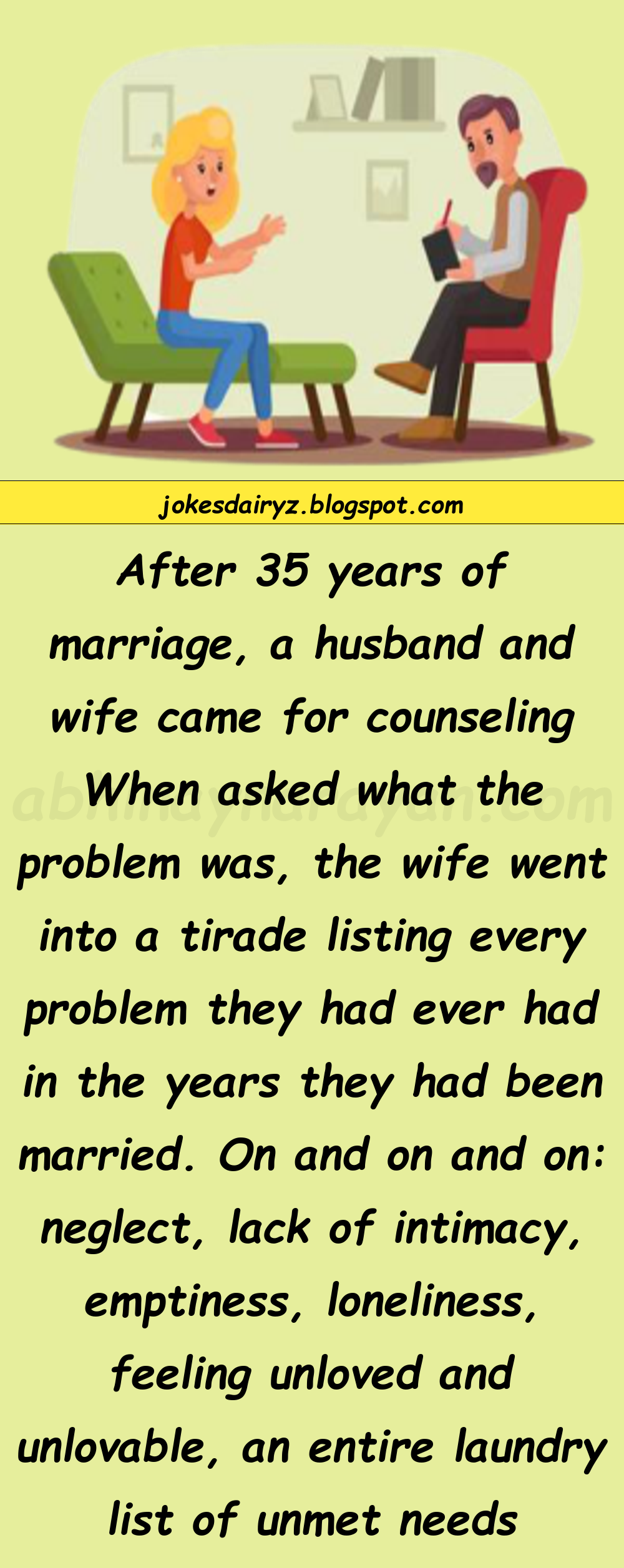After 35 years of marriage, a husband and wife came for counseling